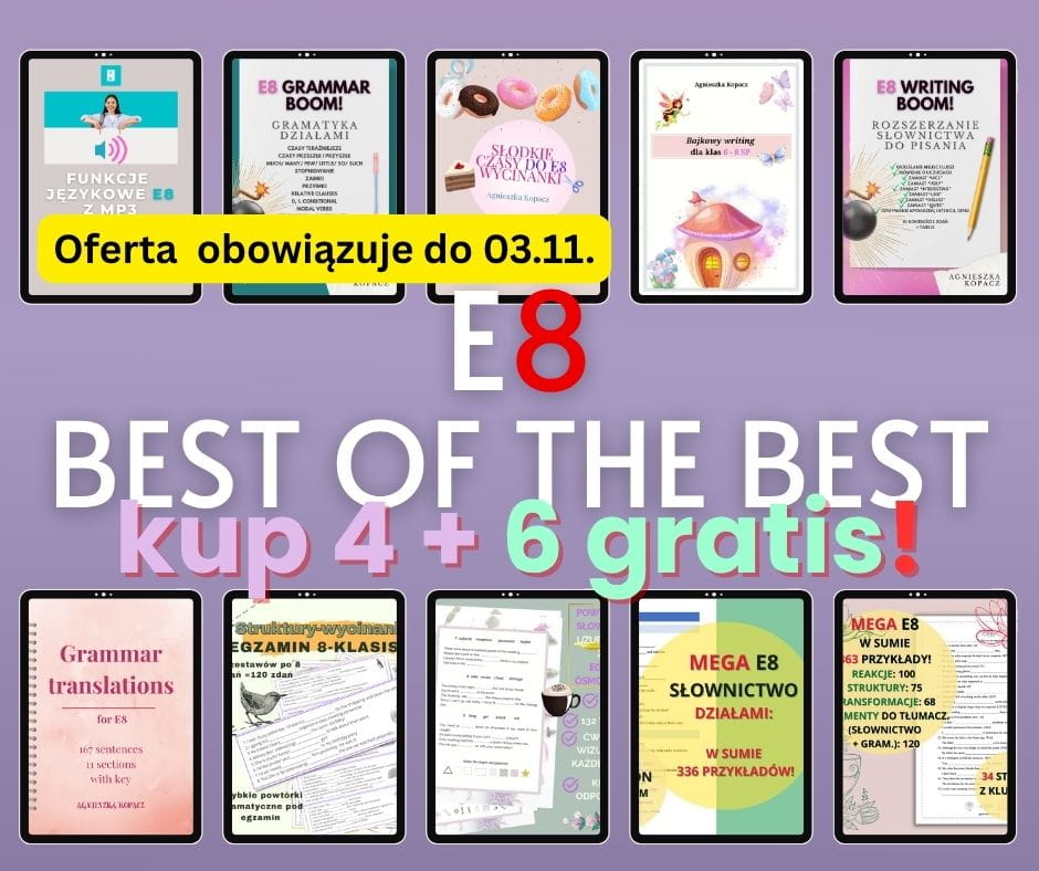 Niepowtarzalna okazja: kup 4 PDFy do EGZAMINU ÓSMOKLASISTY, a 6 dodatkowych otrzymasz GRATIS! W sumie 10 plików za jedyne 89 zł (o wartości 212zł).