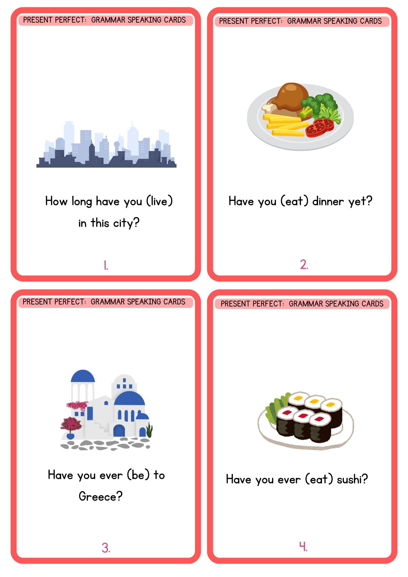 PRESENT PERFECT: 40 GRAMMAR SPEAKING CARDS A2/ B1: