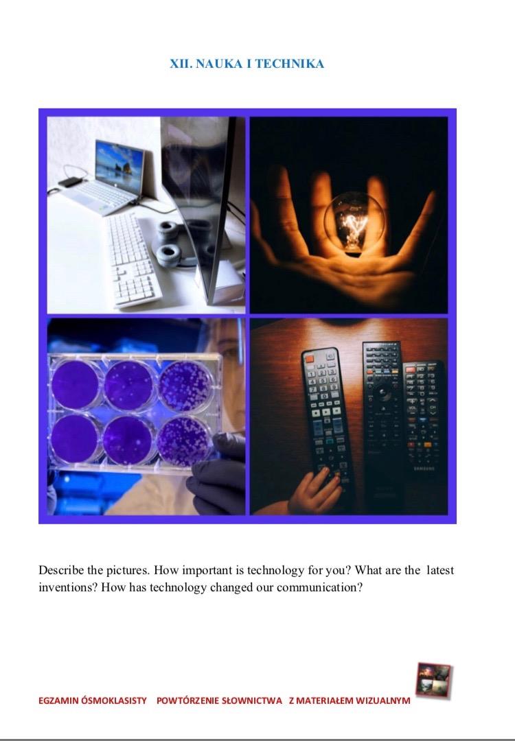 1) SŁOWNICTWO PODZIELONE TEMATYCZNIE Z MATERIAŁEM WIZUALNYM - idealne do zajęć online. Do każdego działu jest strona z materiałem wizualnymi i strona ćwiczeń (słownictwo przydatne do opisu obrazków oraz ważne wyrażenia tematyczne). Lekcję można zacząć od wyświetlenia obrazków, uczniowie je opisują, wprowadzamy temat, zadajemy pytania związane z przedstawionymi sytuacjami, możemy zadać kilka pytań dotyczących życia uczniów. Potem uczniowie wypełniają samodzielnie tabelkę z wyrażeniami. Sprawdzamy, podpowiadamy nieznane słownictwo. Potem wspólnie tłumaczymy fragmenty zdań. Sprawdza się także przy powtarzaniu materiału na maturę podstawową, materiały posiadają klucz.