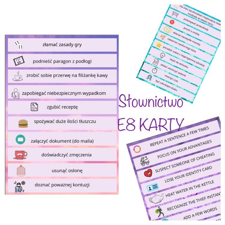 ZESTAW: 2 PLIKI: SŁOWNICTWO NA E8, W SUMIE 63 STRONY PDF